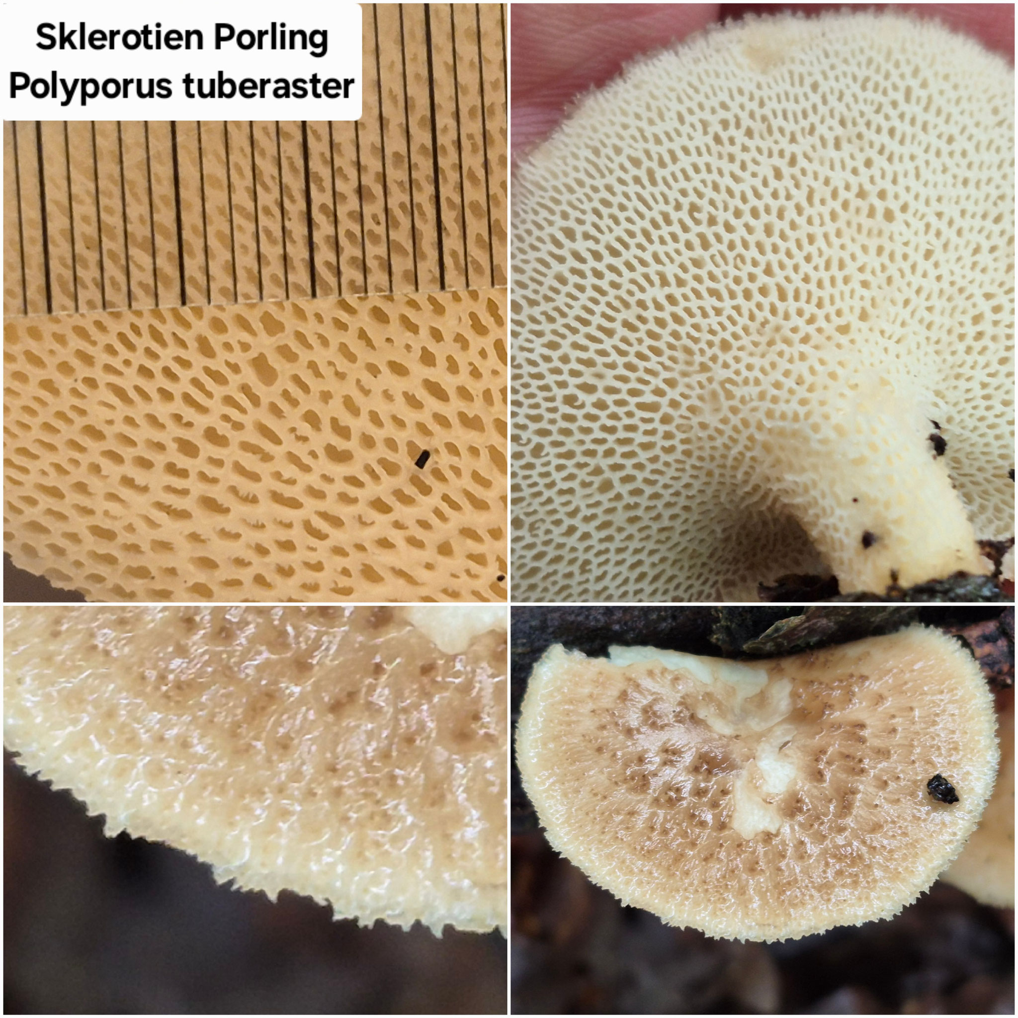 Eichenwirrling von oben und die Unterseite, Flacher Lackporling, Glänzender Lackporling , Glänzender Lackporling etwas älter, Harziger Lackporling, Leberreischling, Schillerporling, Tropfender Schillerporling, Zunderschwamm und Manfred gut behütet.